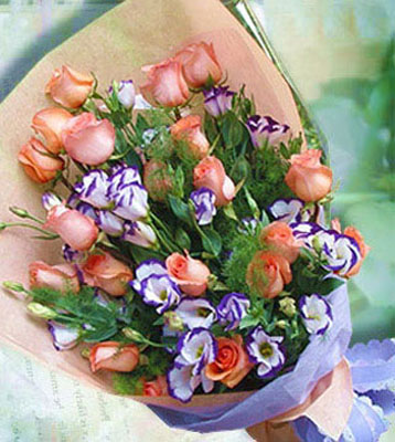 22朵香槟玫瑰搭配紫白双色...